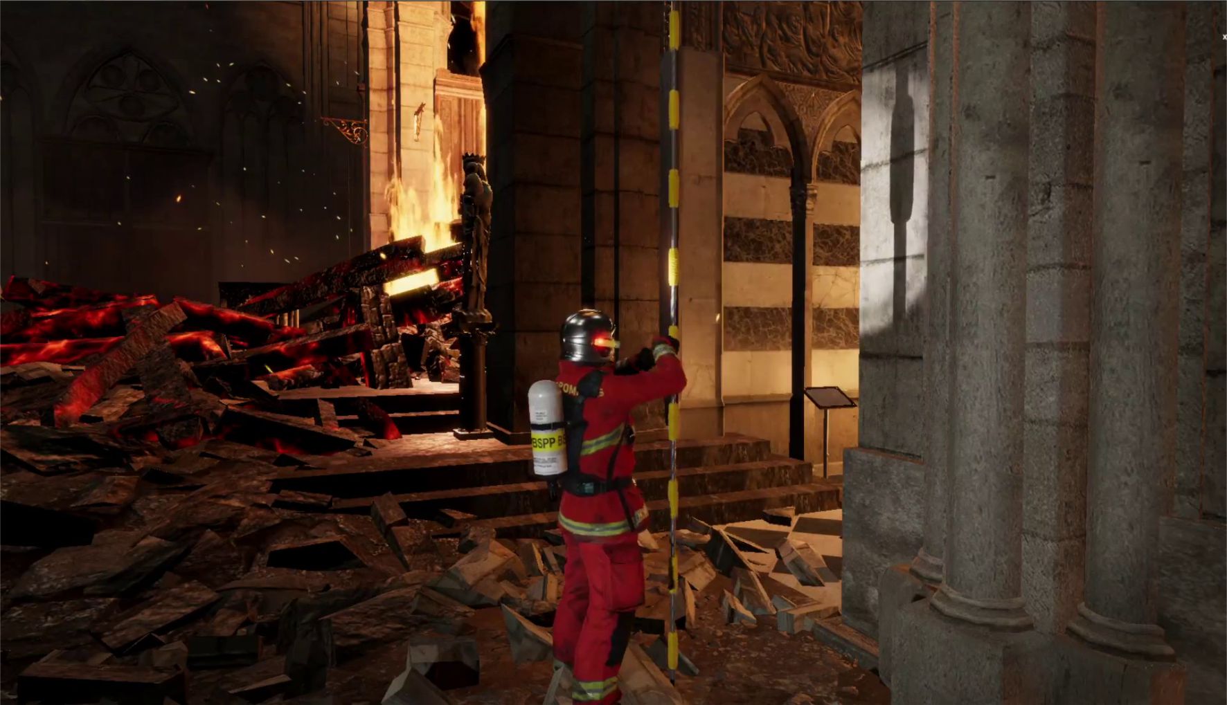 Timp de 45 de minute, vei deveni pompier si vei trai misiunea de salvare a catedralei si a celei mai de pret comori a acesteia: coroana de spini. Cauta seiful relicvei sacre, un secret bine pastrat; strabate nava in flacari dupa prabusirea turlei; apoi urca in turnul de nord, deasupra Parisului, si retraieste misiunea de ultima sansa din clopotnita.